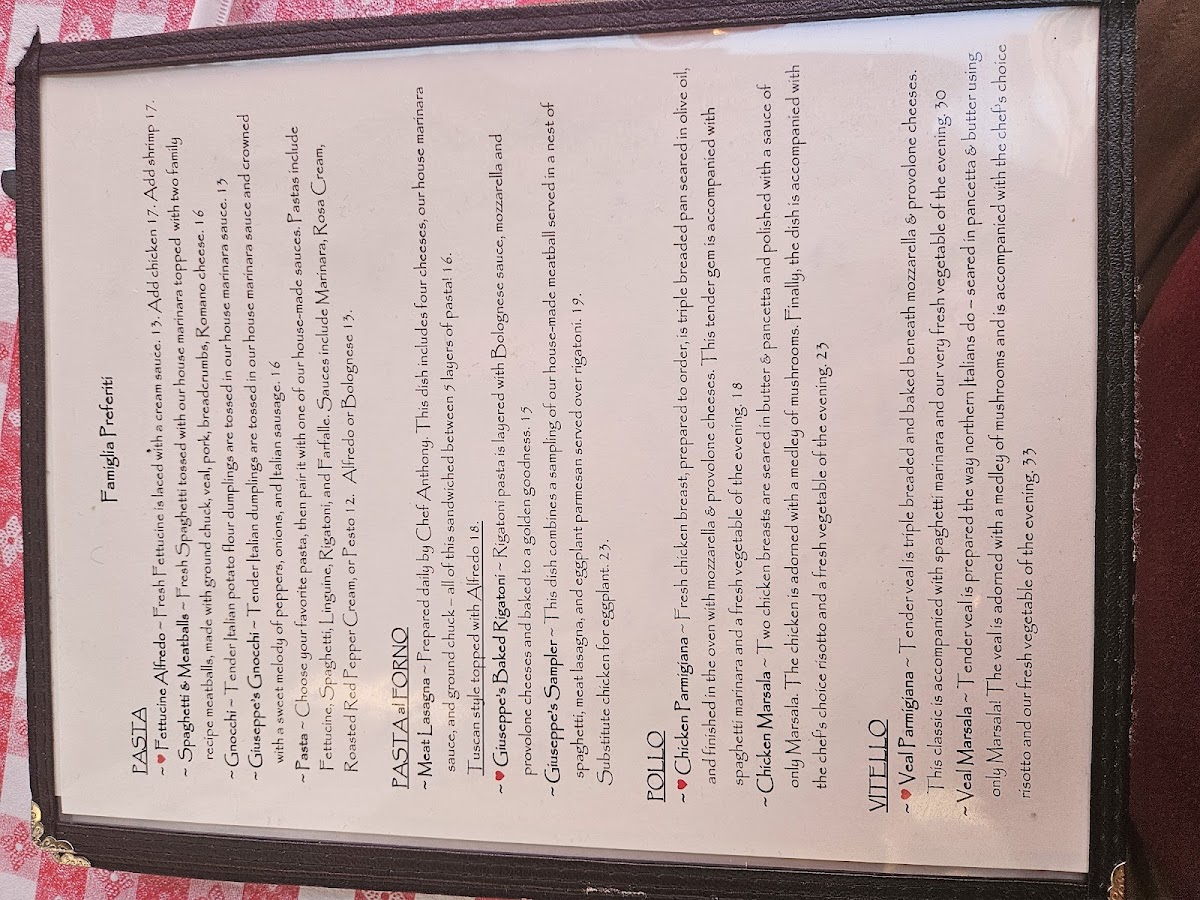 The menu at Lola & Giuseppe's Trattoria offers a thoughtfully crafted selection of Italian classics that feel both comforting and refined. Perfect for a relaxed lunch or a cozy dinner, the dishes invite guests into a warm, intimate setting where every bite celebrates traditional flavors.